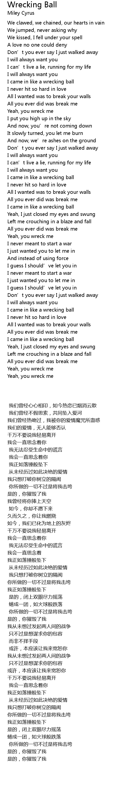 | [00:40.520] | I came in like a wrecking ball |