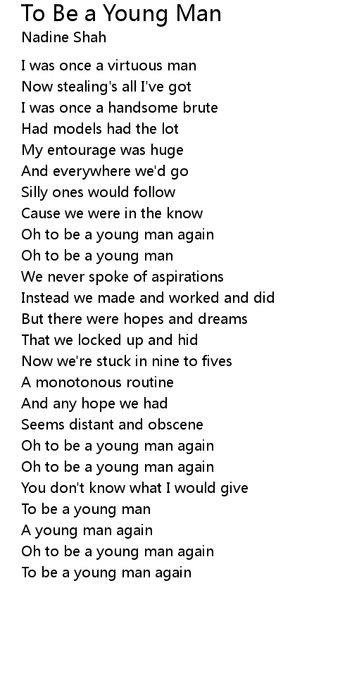 Oh to be a young man |