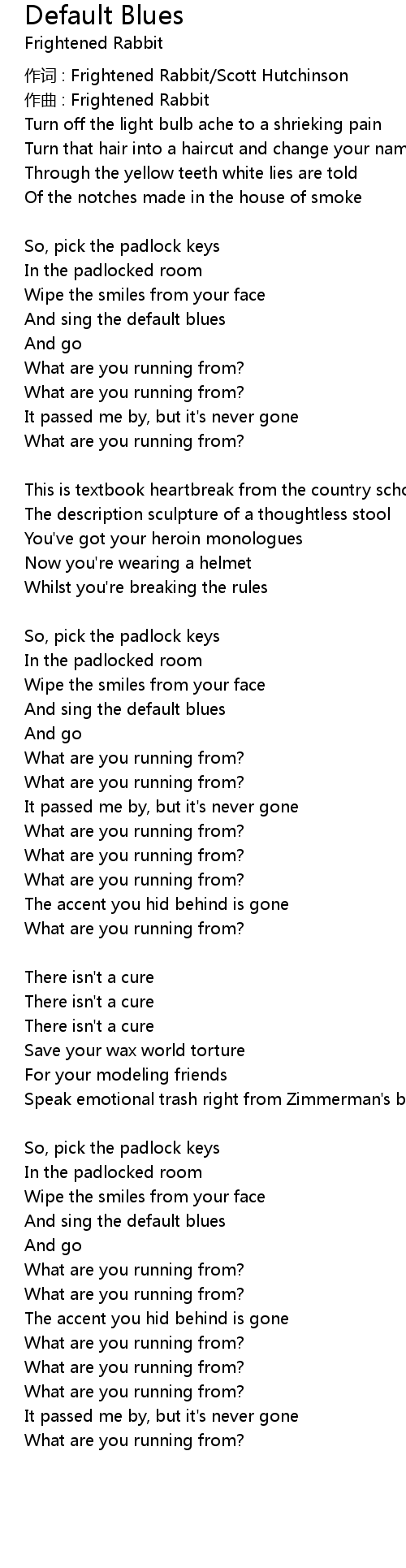 | 作词 : Frightened Rabbit/Scott Hutchinson | |
