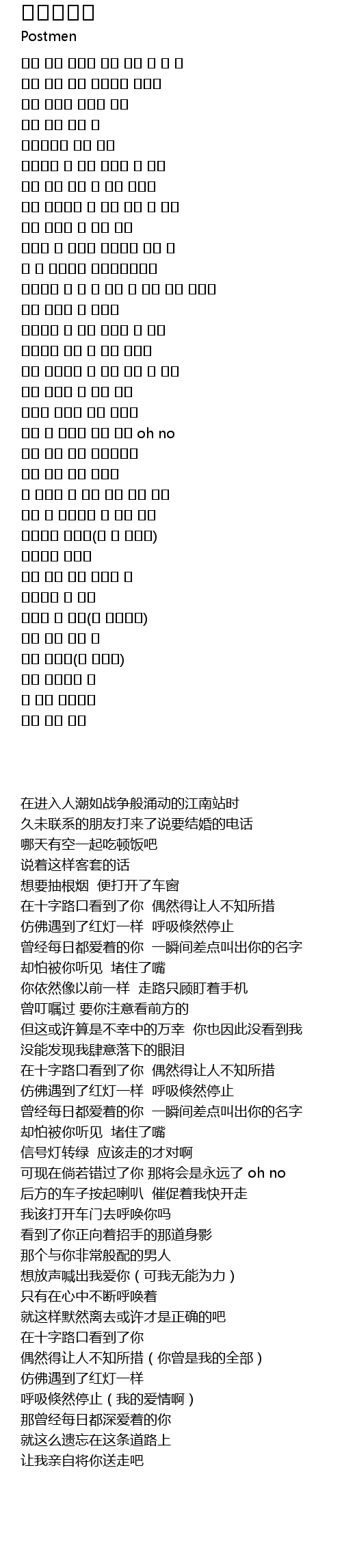 | [00:46.58] | 사거리에 널 봤어 우연히 널 봤어 |