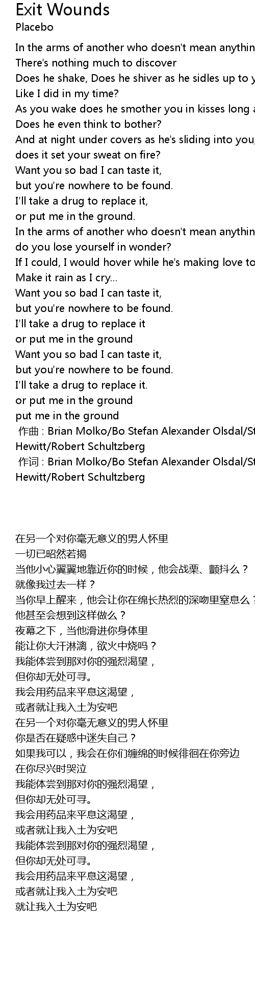| [00:00.00] | zuò cí : Brian Molko Bo Stefan Alexander Olsdal Steve Forrest Steve Hewitt Robert Schultzberg |