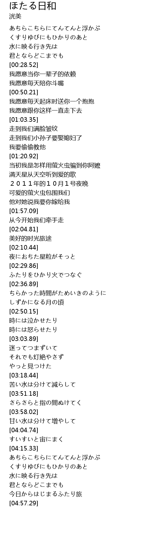 | [04:43.31] | 今日からはじまるふたり旅 |