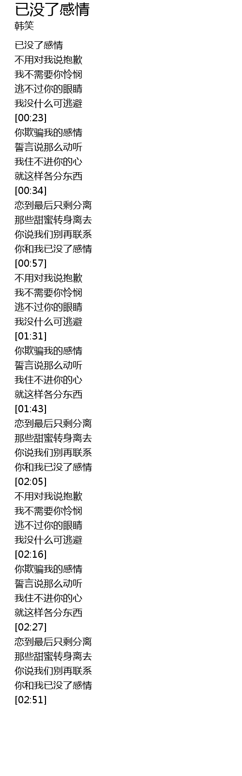 | [02:45] | nǐ hé wǒ yǐ méi le gǎn qíng |
