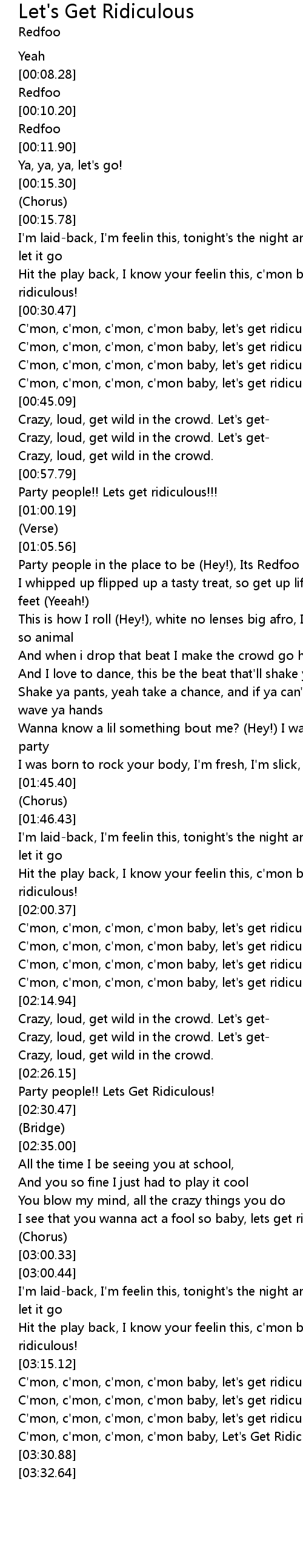 C'mon, c'mon, c'mon, c'mon baby, let's get ridiculous (oh-ohh-oh!) |