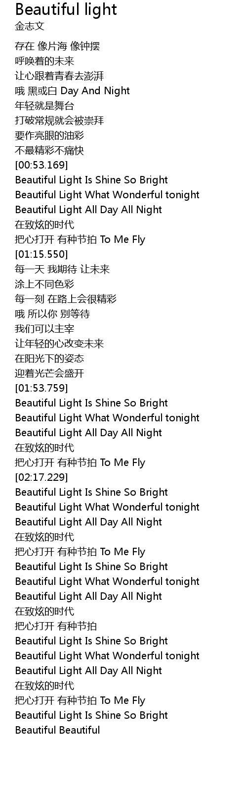 | [02:04.289] | Beautiful Light All Day All Night |