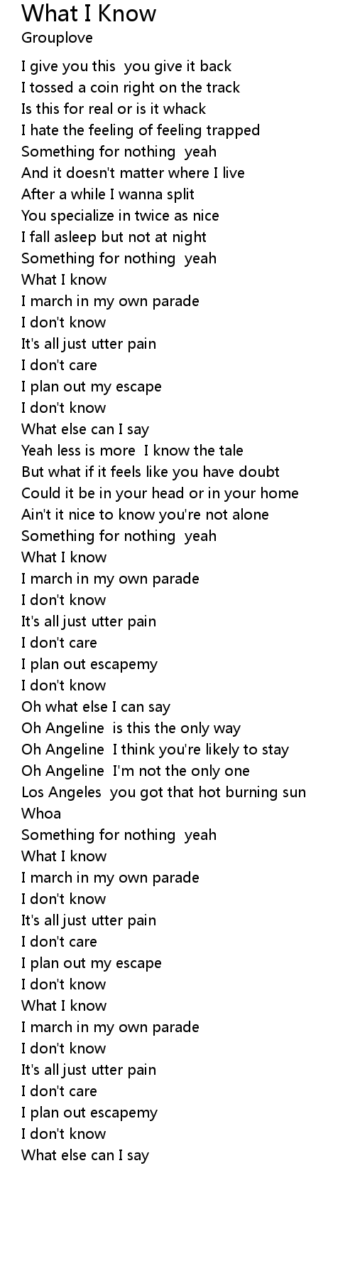 What I Know Lyrics