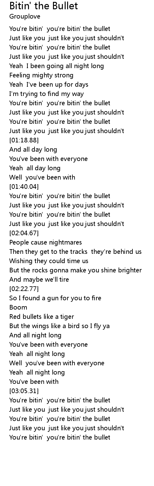You're bitin' you're bitin' the bullet |