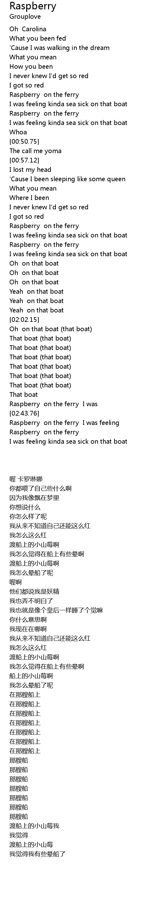 [02:44.75] Raspberry on the ferry I was feeling