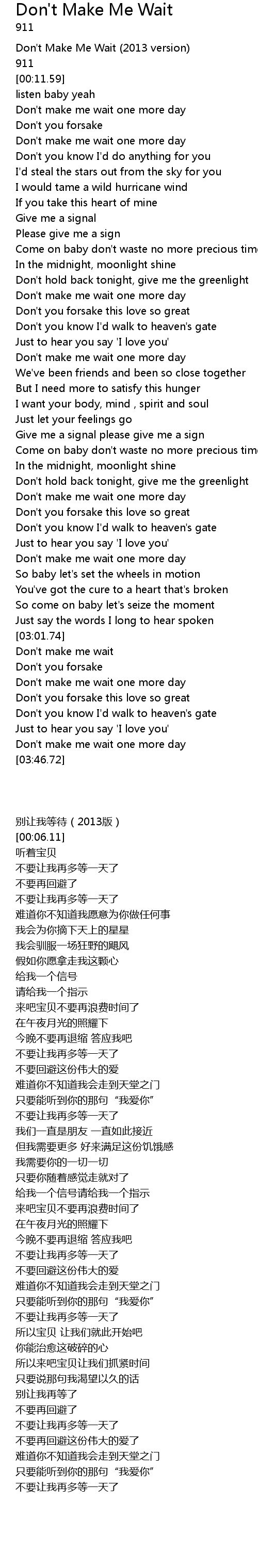 [00:01.16] Don't Make Me Wait (2013 version)