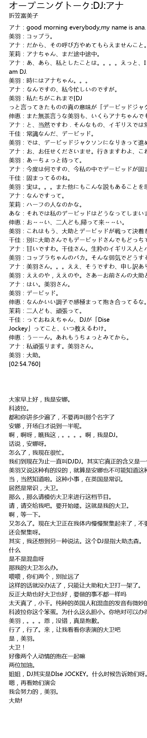 | [02:54.760] | アナ:私頑張ります。美羽さん。 |