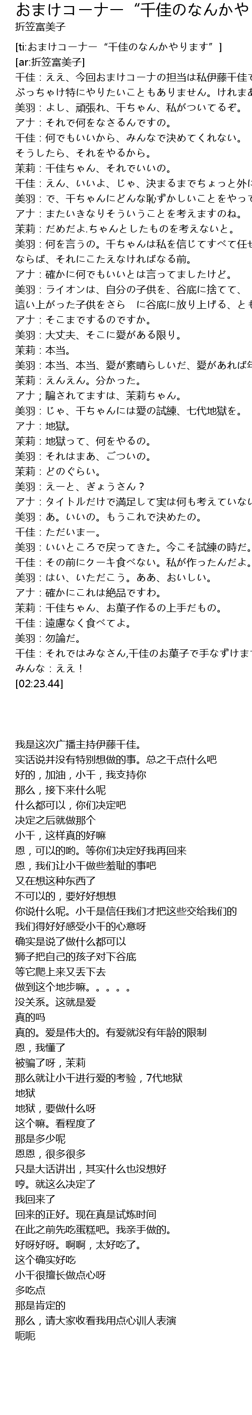 | [ti:おまけコーナー“千佳のなんかやります”] | |