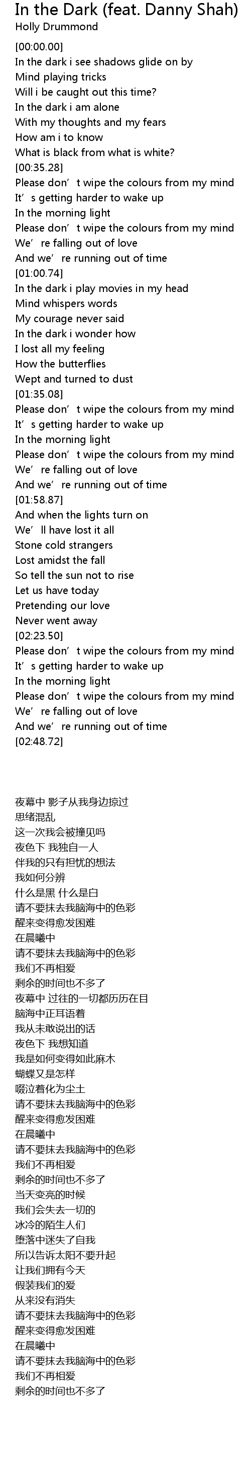 | [00:47.44] | Please don' t wipe the colours from my mind |