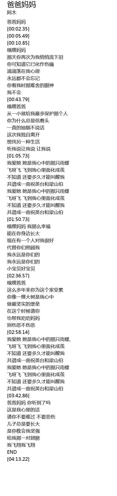| [00:00.00] | 爸爸妈妈 |