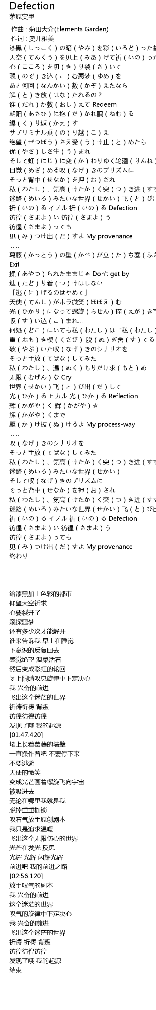 | [01:36.50] | 祈(いの)る イノル 祈(いの)る Defection |