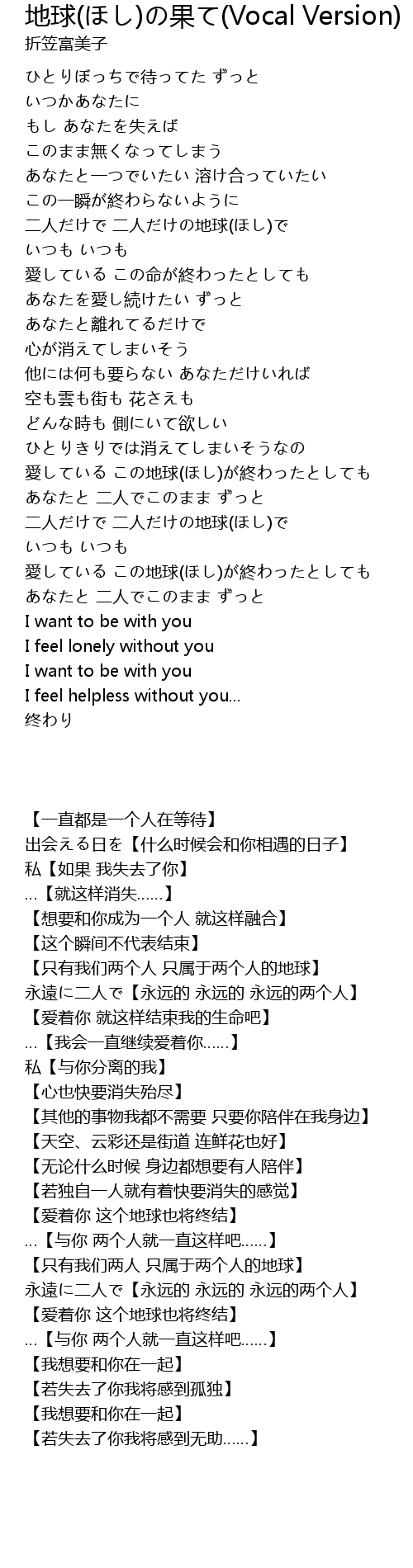| [04:29.47] | 愛している この地球(ほし)が終わったとしても |