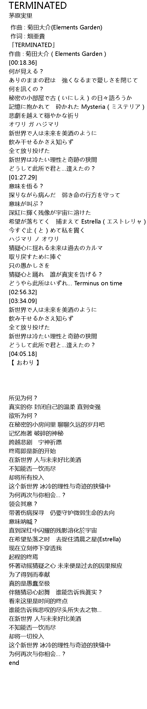 | [02:47.84] | どうやら此所はいずれ… Terminus on time |