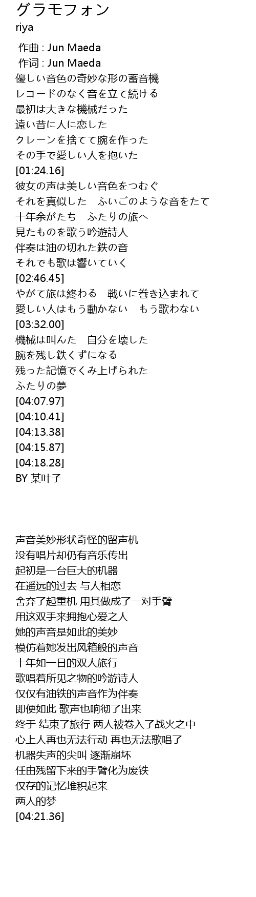 | [00:16.98] | 優しい音色の奇妙な形の蓄音機 |