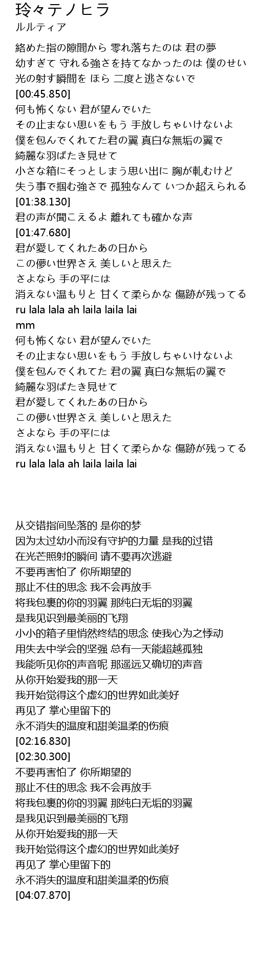 | [03:31.740] | 僕を包んでくれてた 君の翼 真白な無垢の翼で |