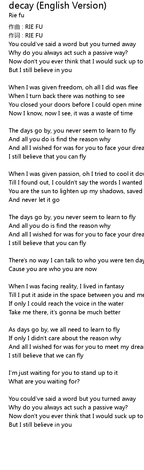 | 作词 : RIE FU | |