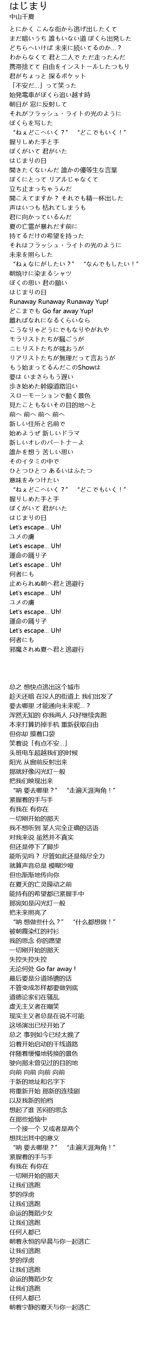 | [04:00.250] | 止められぬ朝へ君と逃避行 |