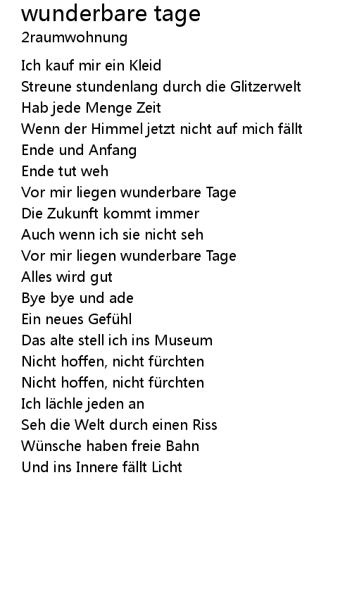 | Song | wunderbare tage |