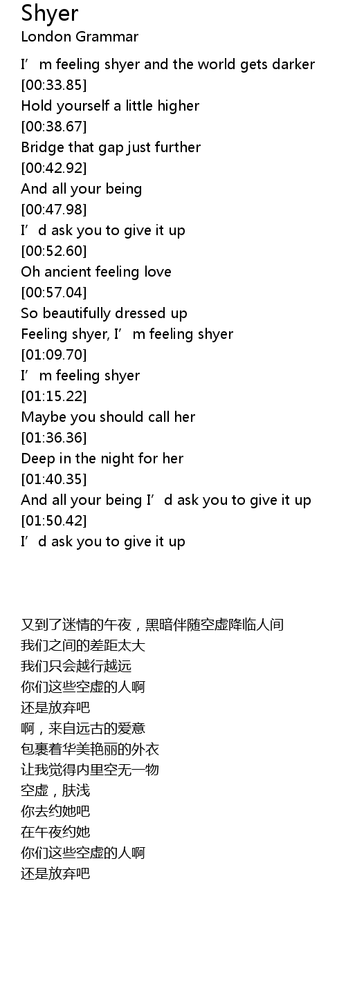 | [01:01.69] | Feeling shyer, I’m feeling shyer |