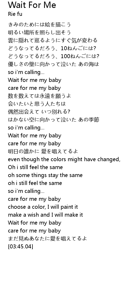 | [03:20.62] | Wait for me my baby |