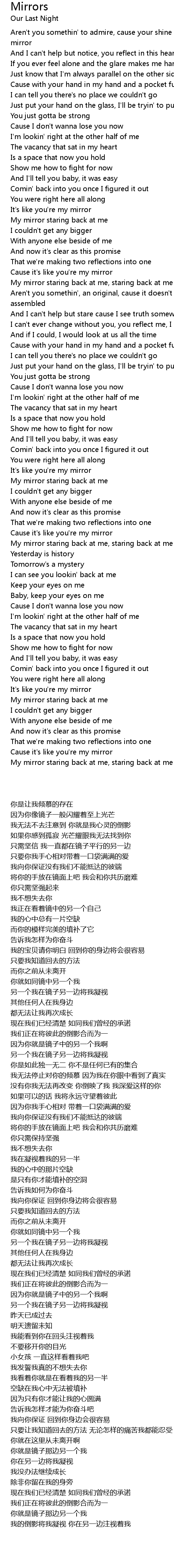 Cause it's like you're my mirror |