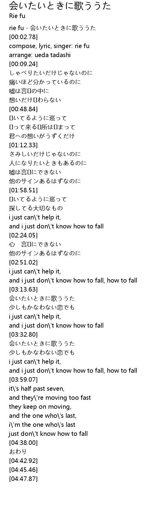 | [00:00.00] | rie fu - 会いたいときに歌ううた |