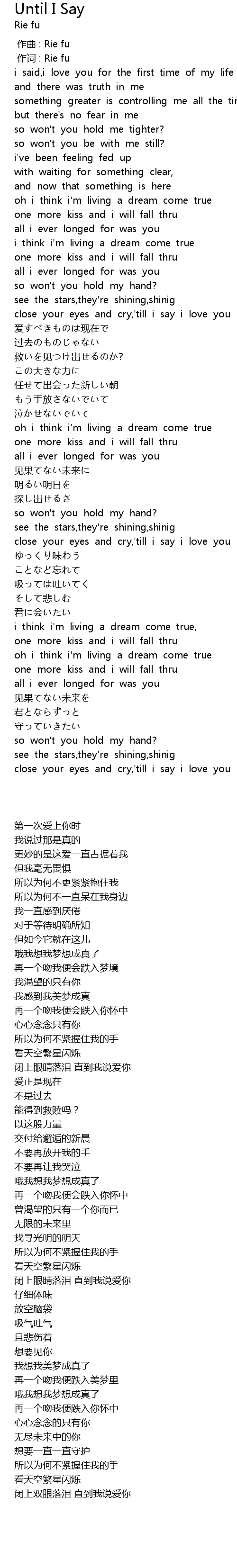 | [00:01.00] | 作词 : Rie fu |