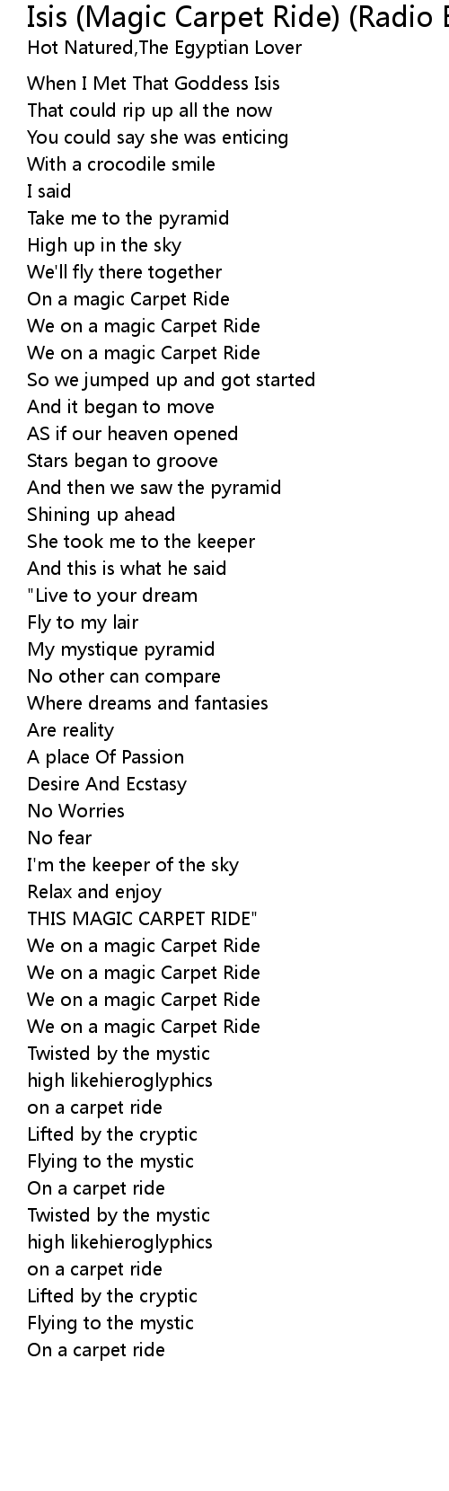 Isis (Magic Carpet Ride) (Radio Edit) Lyrics