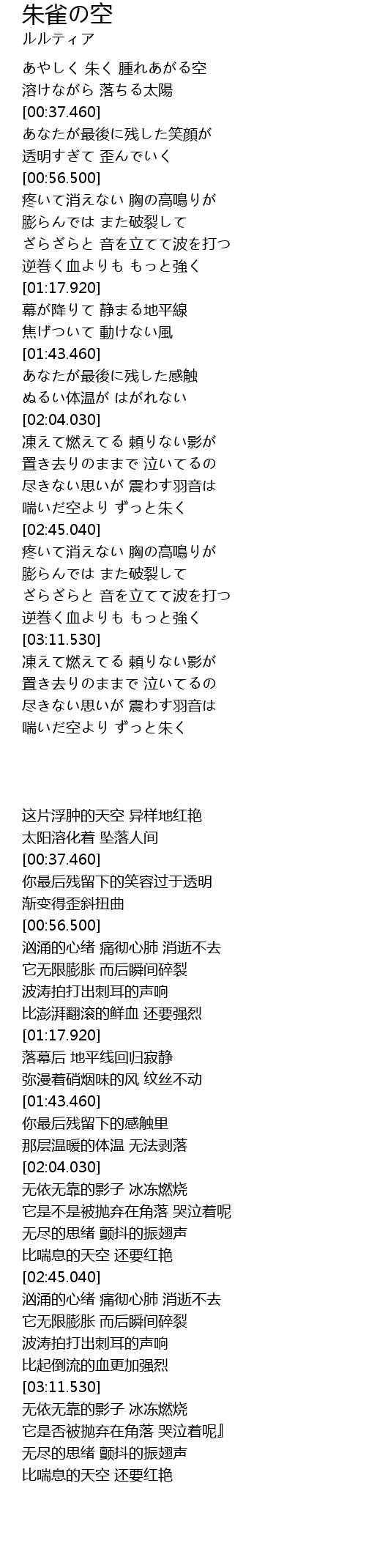 | [00:20.200] | あやしく 朱く 腫れあがる空 |