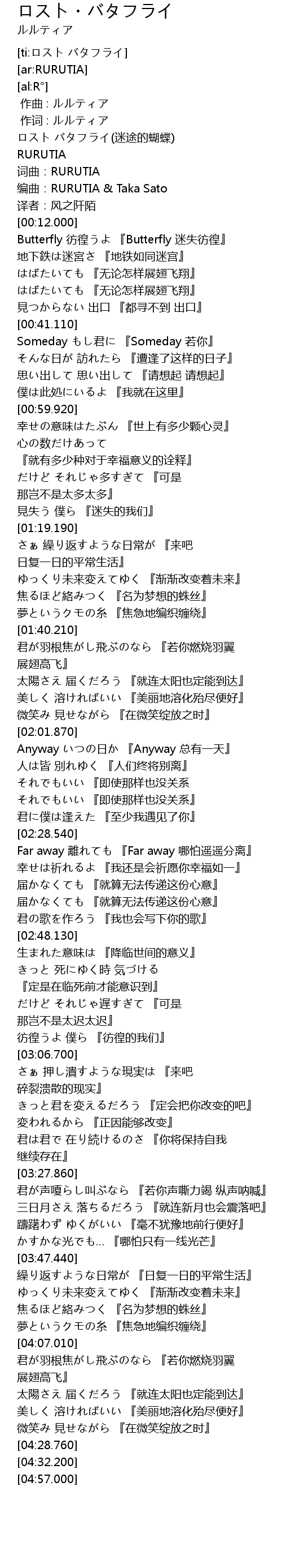 | [00:02.000] | ロスト バタフライ(迷途的蝴蝶) |