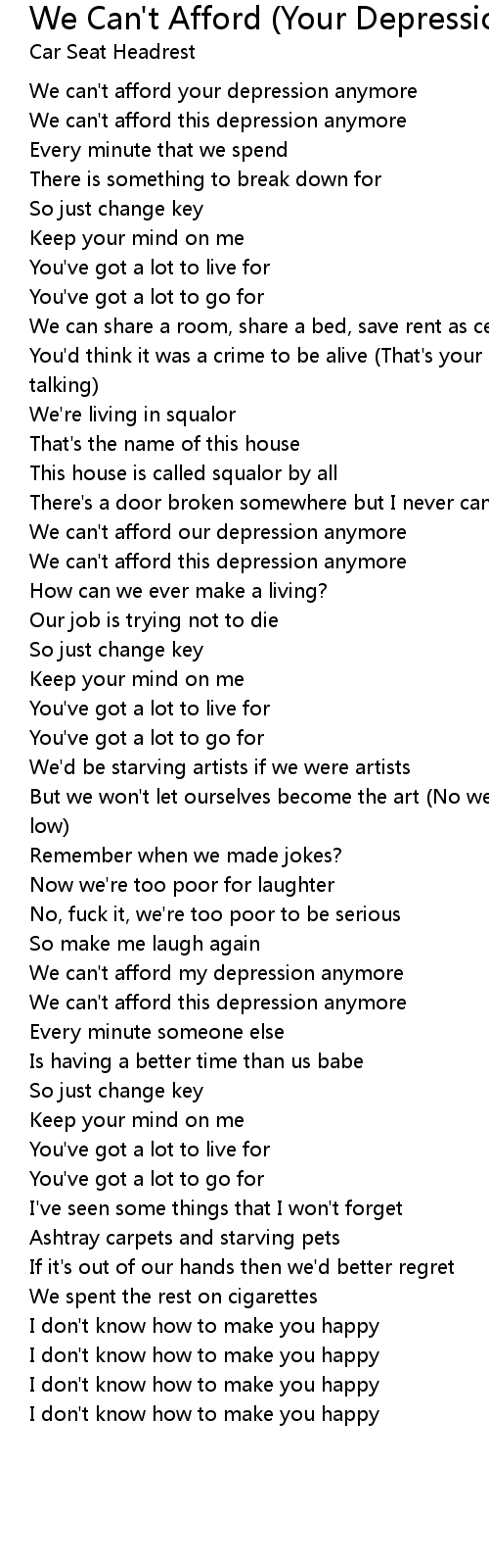We can't afford my depression anymore |