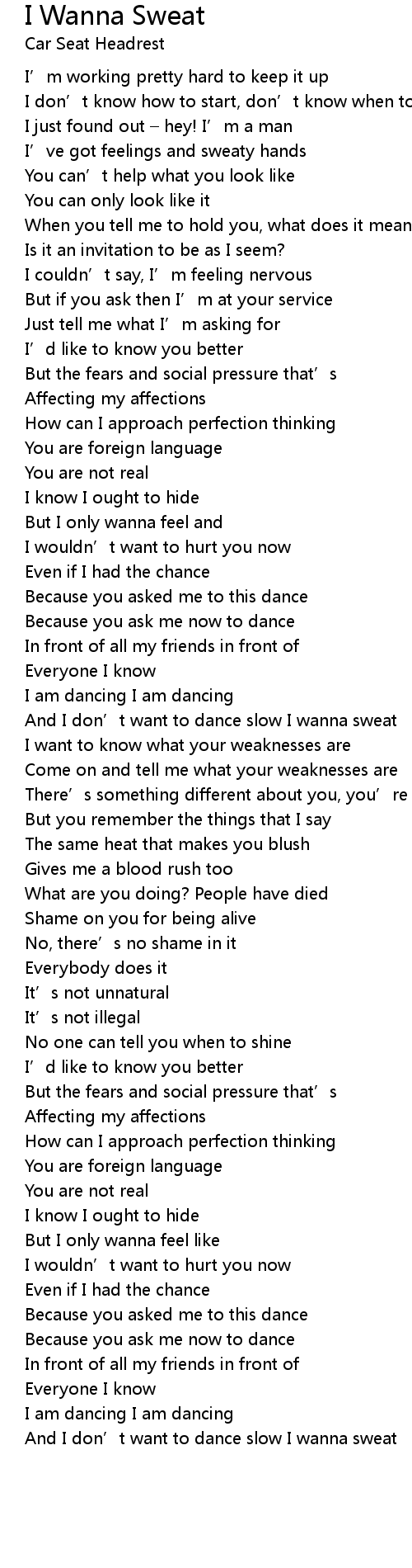 | [01:43.431] | And I don' t want to dance slow I wanna sweat |
