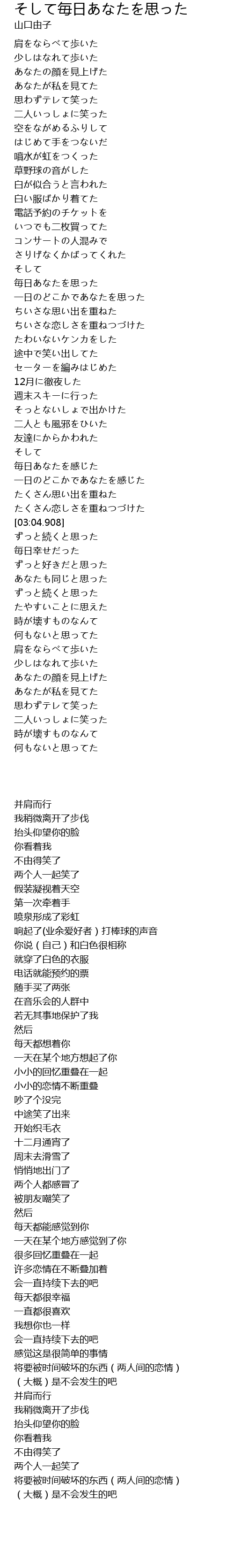 毎日あなたを思った |