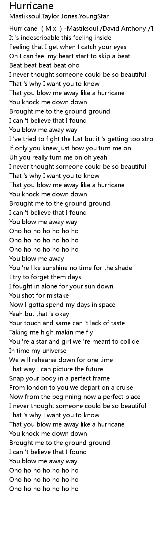 | [00:00.00] | Hurricane Mix Mastiksoul David Anthony Taylor Jones |