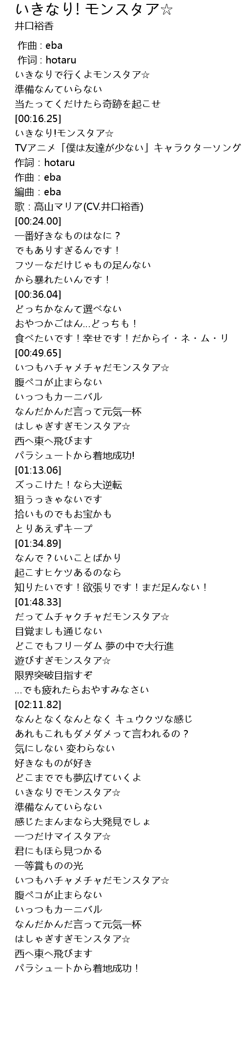 | [00:01.61] | いきなりで行くよモンスタア☆ |