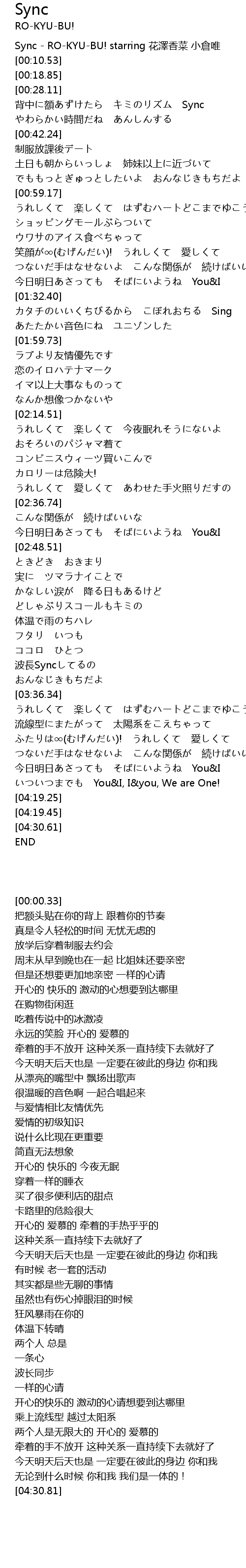 | [00:00.33] | Sync - RO-KYU-BU! starring 花澤香菜 小倉唯 |