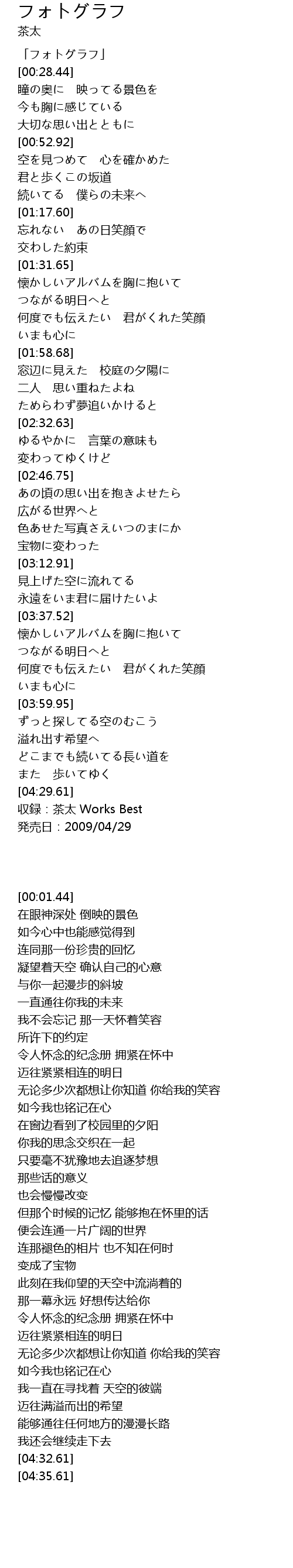 | [04:32.61] | 収録:茶太 Works Best |
