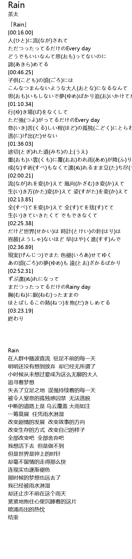 | [00:00.00] | 「Rain」 |