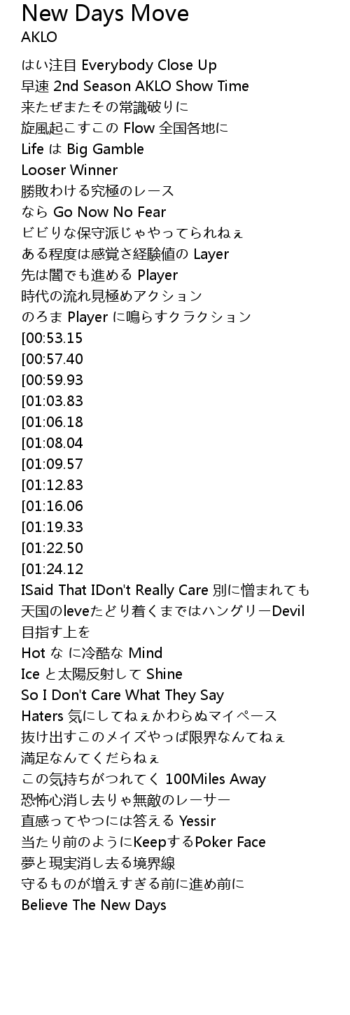 | [01:52.26] | Haters 気にしてねぇかわらぬマイペース |