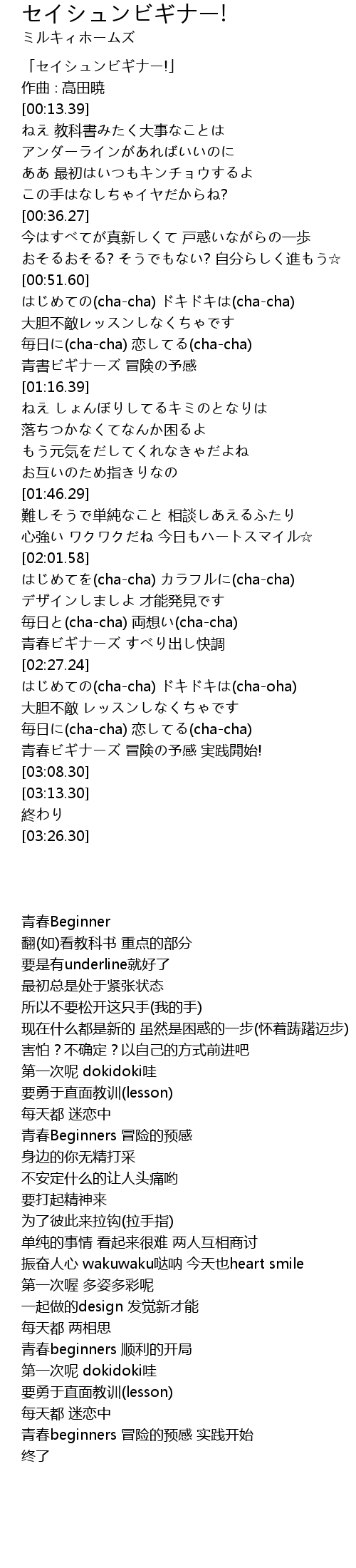 | [00:52.31] | はじめての(cha-cha) ドキドキは(cha-cha) |