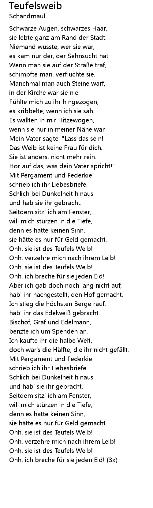 | Ohh, ich breche für sie jeden Eid! (3x) |