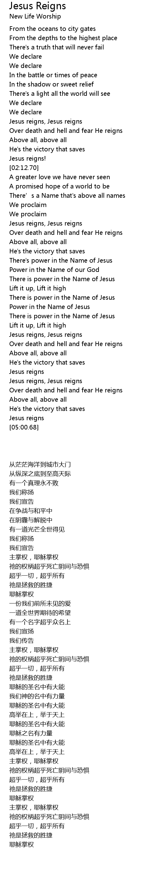 | [04:32.77] | Jesus reigns, Jesus reigns |
