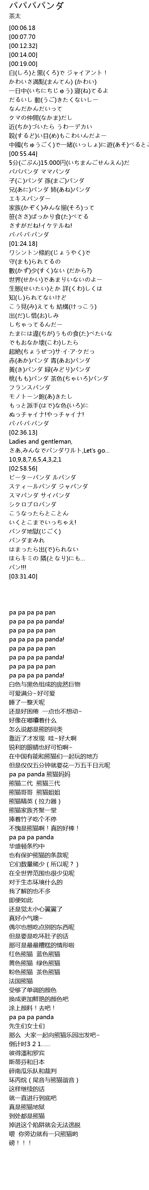 | [02:18.27] | 桃(もも)パンダ 茶色(ちゃいろ)パンダ |