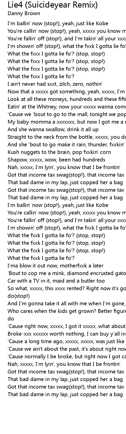 [01:49.884] What the fxxk I gotta lie fo'? (stop, stop!)