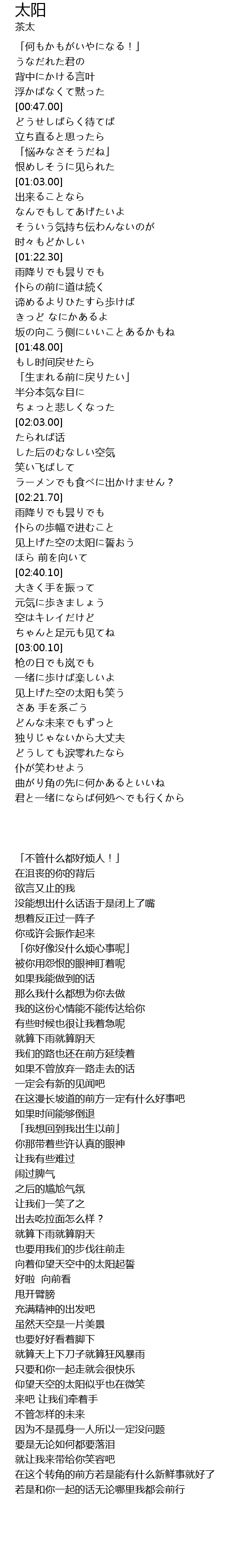 | [02:32.80] | jiàn shàng kōng tài yáng shì |