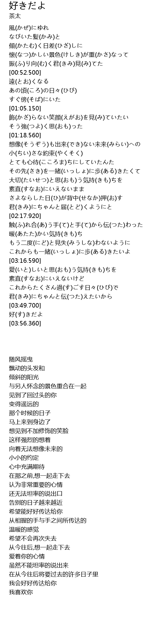| [03:38.680] | 君(きみ)にちゃんと伝(つた)えたいから |