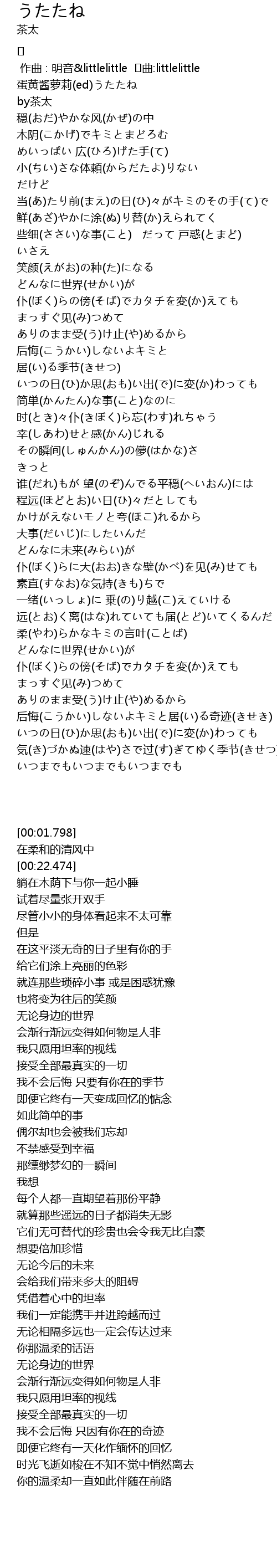 | [00:01.798] | 蛋黄酱萝莉(ed)うたたね |